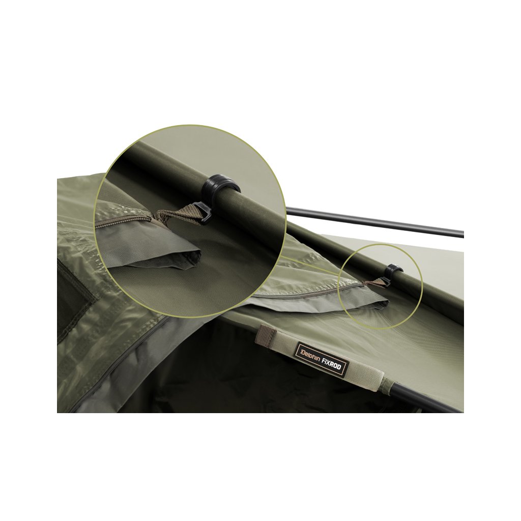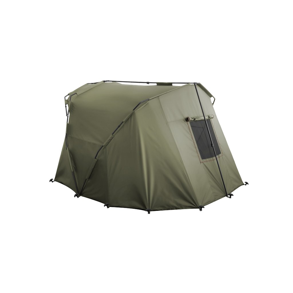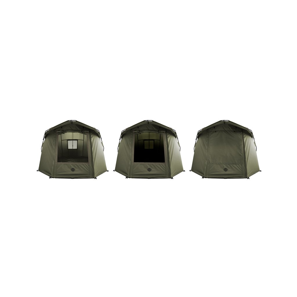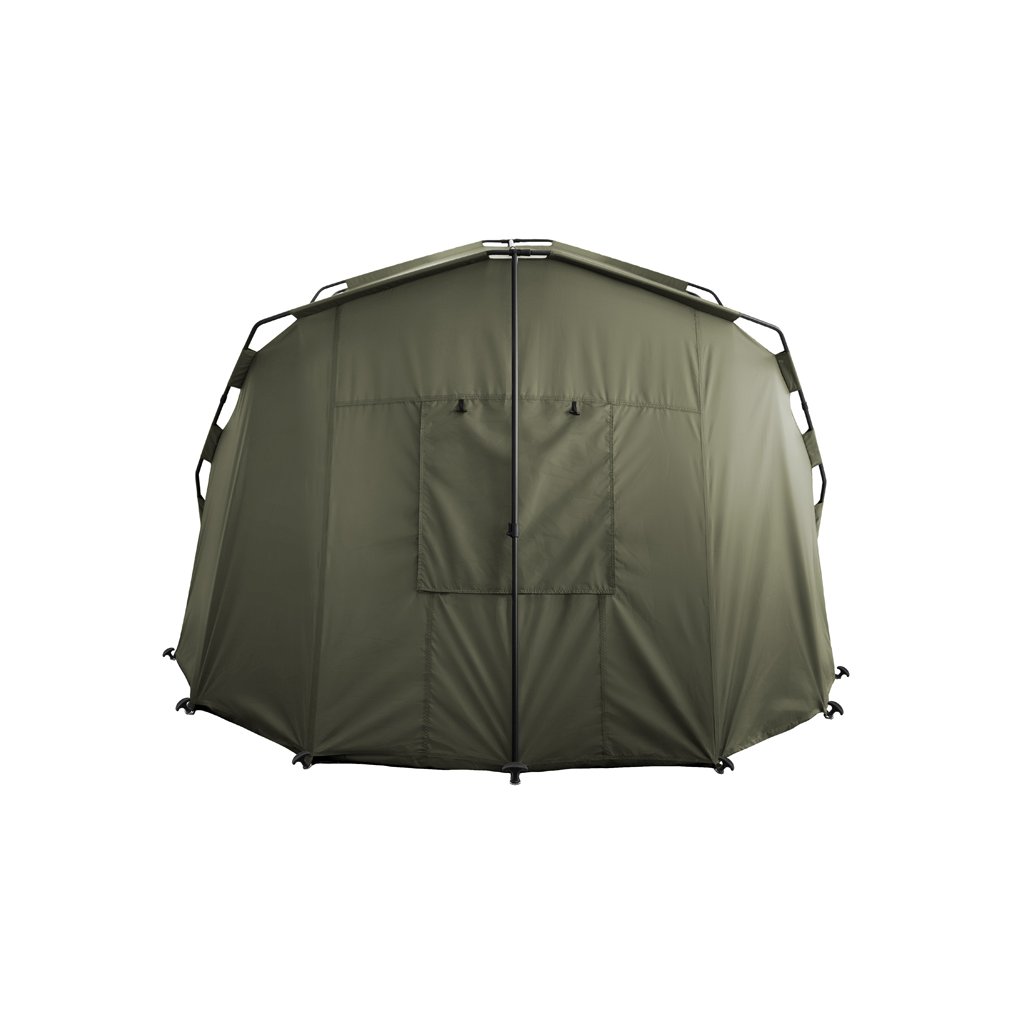 Každé jedno okno tvoří podstatnou část ceny bivaku. Je nutné započítat tam materiál a extra pracné šití. Rozhodli jsme se však plavat proti proudu a klasický úzký vchod a dvě okna, které znáte z většiny bivaků jsme nahradili ultra širokým vchodem, který má několik podstatných výhod. Zachovává totiž dokonalý rozhled na situaci okolo bivaku, jako kdybyste měli v přední části obě okna. Navíc je možné bivak mnohem rychleji provětrat (součástí bivaku je i zadní okno) a také v případě nutnosti uzavřít. Vkládání a vyjímání lehátek je nyní o level jednodušší! A co je nejdůležitější, cenu, kterou byste uhradili za v tomto případě zbytečná okna, jsme přesunuli do prostoru bivaku. Ten nabízí grandiózní prostor pro dvě osoby.