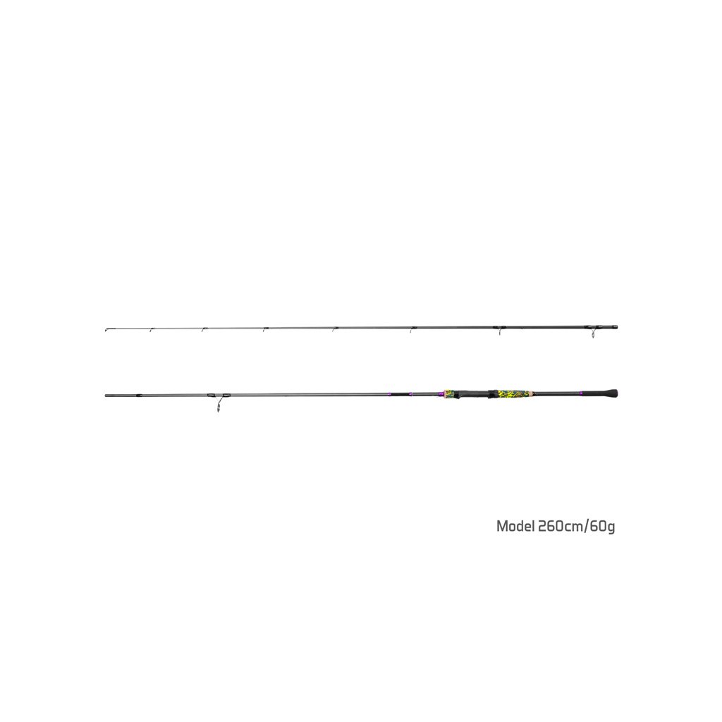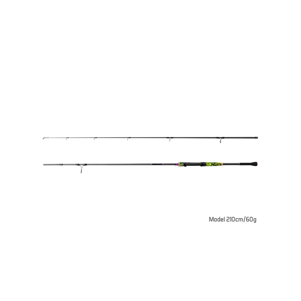 Zhypnotizujte všechny velké dravce! Pruty pro všechny, kterým nic neříkají zažité konvence. Na první pohled upoutá rukojeť, která je tvořena barevnou kamufláží s použitím barev zářivá zelená, hnědá a zelená. Nad touto "hypnotickou" rukojetí najdeme decentní korkové detaily a v celé spodní třetině prutu najdeme i fialové zdobení vyvázané nití. Matný šedý blank a černé vázání oček činí z tohoto prutu elegantního společníka u vody, zatímco moderně laděná spodní část okamžitě upoutá pozornost. Poloparabolická akce na tužším blanku činí z tohoto modelu velmi účinnou zbraň na velké dravce, které prut dokáže pohodlně vypružit v celé své délce a klidně zdolat i srdnaté štiky či menší sumce.