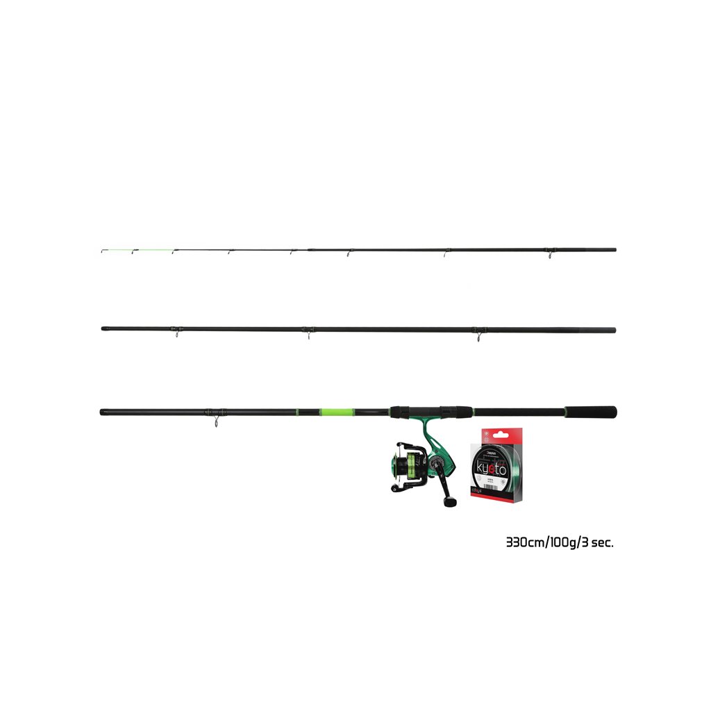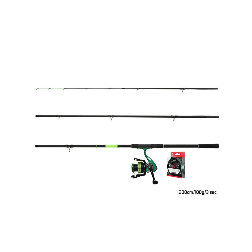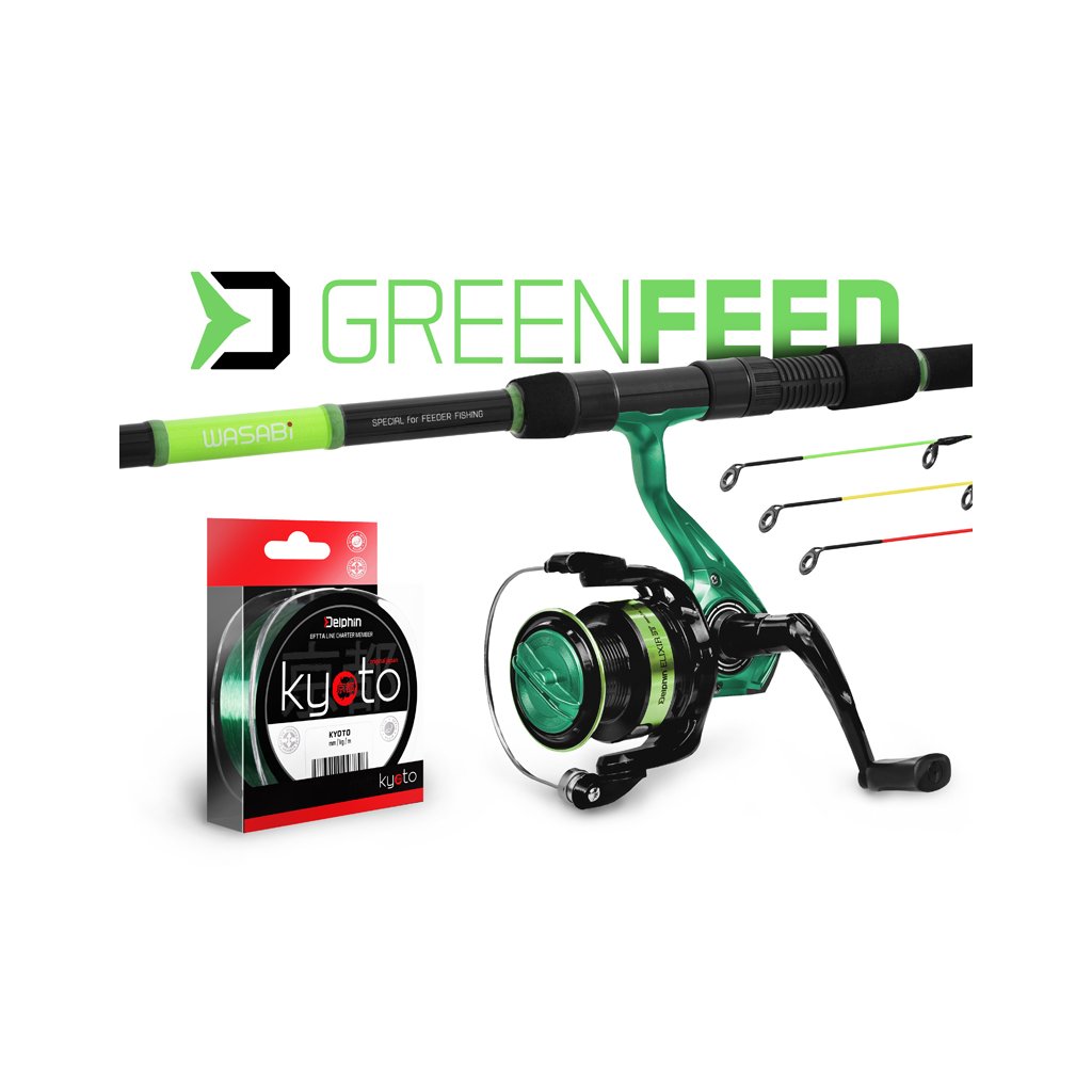 Pokud se neumíte rozhodnout, jak si zkombinovat spolehlivou feederovou sestavu, tak přesně pro vás je zde feederový set Delphin GreenFEED. Set se skládá z třídílného prutu Delphin WASABI Feeder NXT, blank je vyroben z ideálního poměru kompozitních materiálů. Rukojeť z EVA pěny padne do ruky při zdolávání i nahazování. Akce prutu je příjemná a bonusem jsou očka s keramickou výplní. K prutu jsou samozřejmě přibaleny také tři náhradní špičky (1x Light, 1x Medium, 1x Heavy). Svým zeleno-černým provedením dokonale zapadne do setu naviják Delphin ELIXIR. Tělo z lehkého kompozitního materiálu zaručuje dlouhou životnost. Kuličková ložiska v počtu 3+1 spolu s převodovým poměrem 5,0:1 a mechanismem s vyváženým rotorem zaručí tichý a plynulý chod s důkladným ukládáním vlasce. Kapacita cívky je dostatečná k dané rybolovné technice, při průměru vlasce 0,18mm se vejde na cívku až 275m vlasce. Samozřejmě, aby byl set kompletní, tak nesmí chybět vlasec KYOTO s minimální roztažností, což vám zaručí rozeznat záběr i u těch nejopatrnějších ryb. Feederový set potěší široké spektrum rybářů, kteří se věnují rybolovné technice feeder.