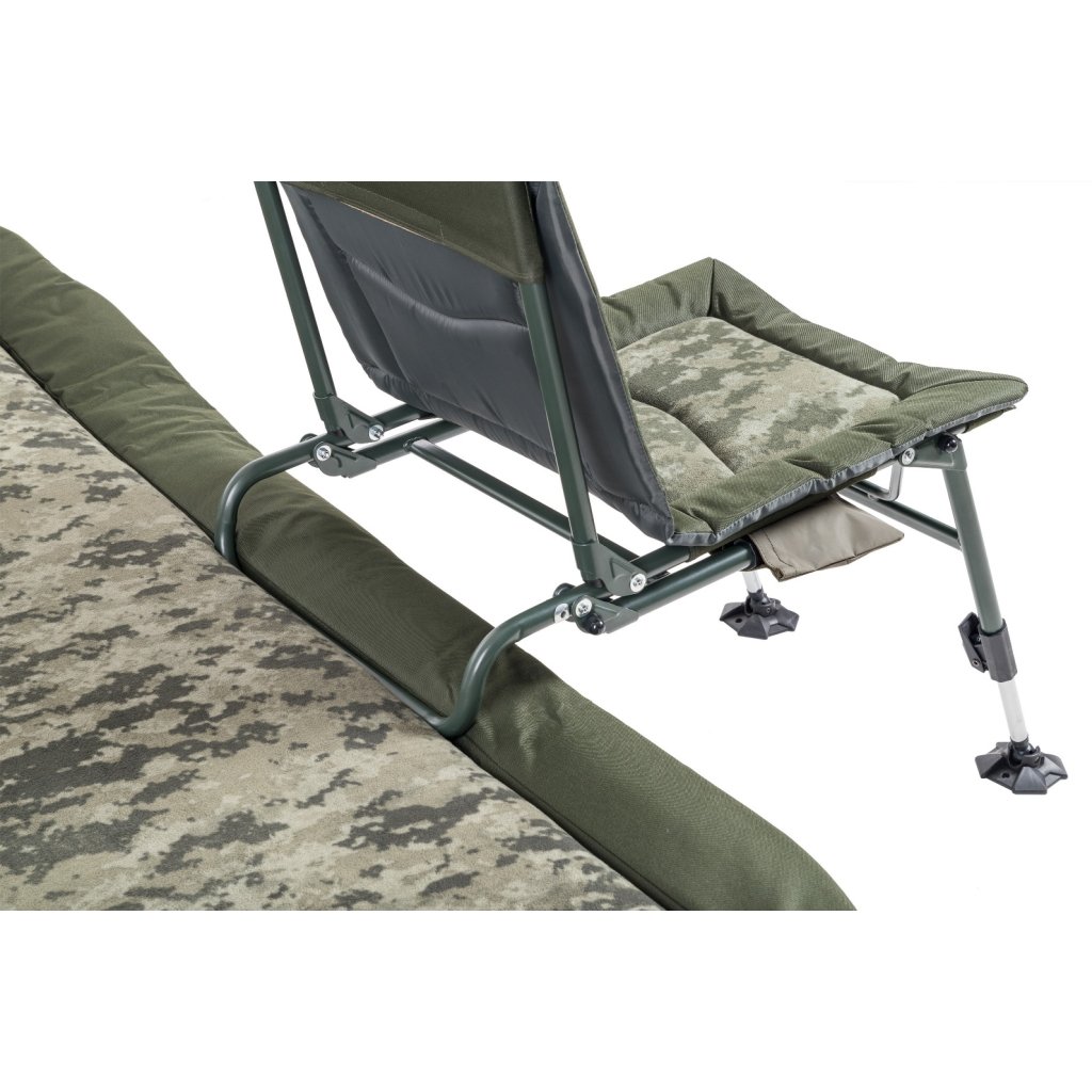 Toto unikátně navržené křeslo umožňuje běžné použití jako lehké a rychle rozložitelné křeslo střední velikosti se čtyřmi teleskopickými nohami. Během několika vteřin jej lze upravit pro umístění zadní stranou na lehátku se spacákem. Speciálně tvarovaná zadní část rámu dosedá na lehátko celou plochou a brání tak lokálnímu poškození výplně spacáku nebo matrace lehátka. Křeslo je vybaveno silným polstrováním pohodlným fleece potahem v unikátním CamoCODE designu. Je osazeno samovýsuvnými nohami a výkyvnými patkami proti zaboření.
