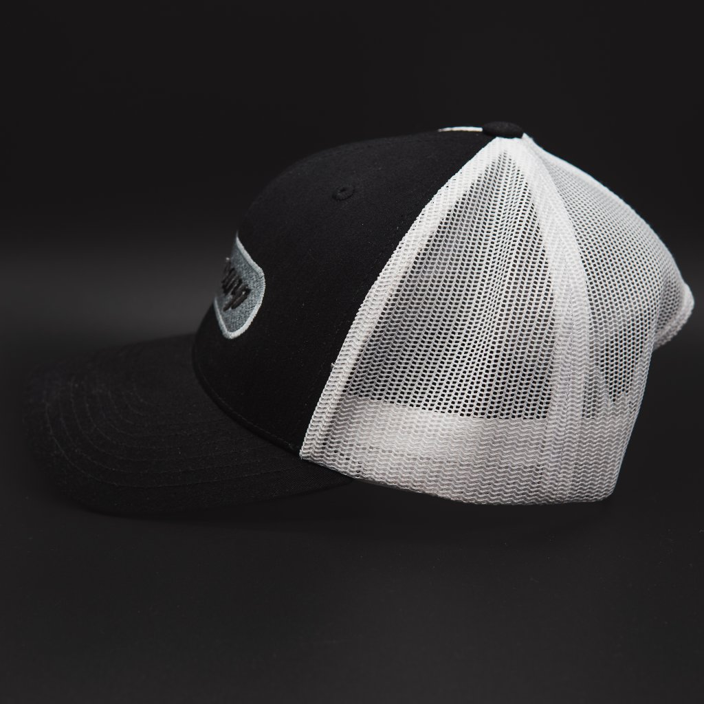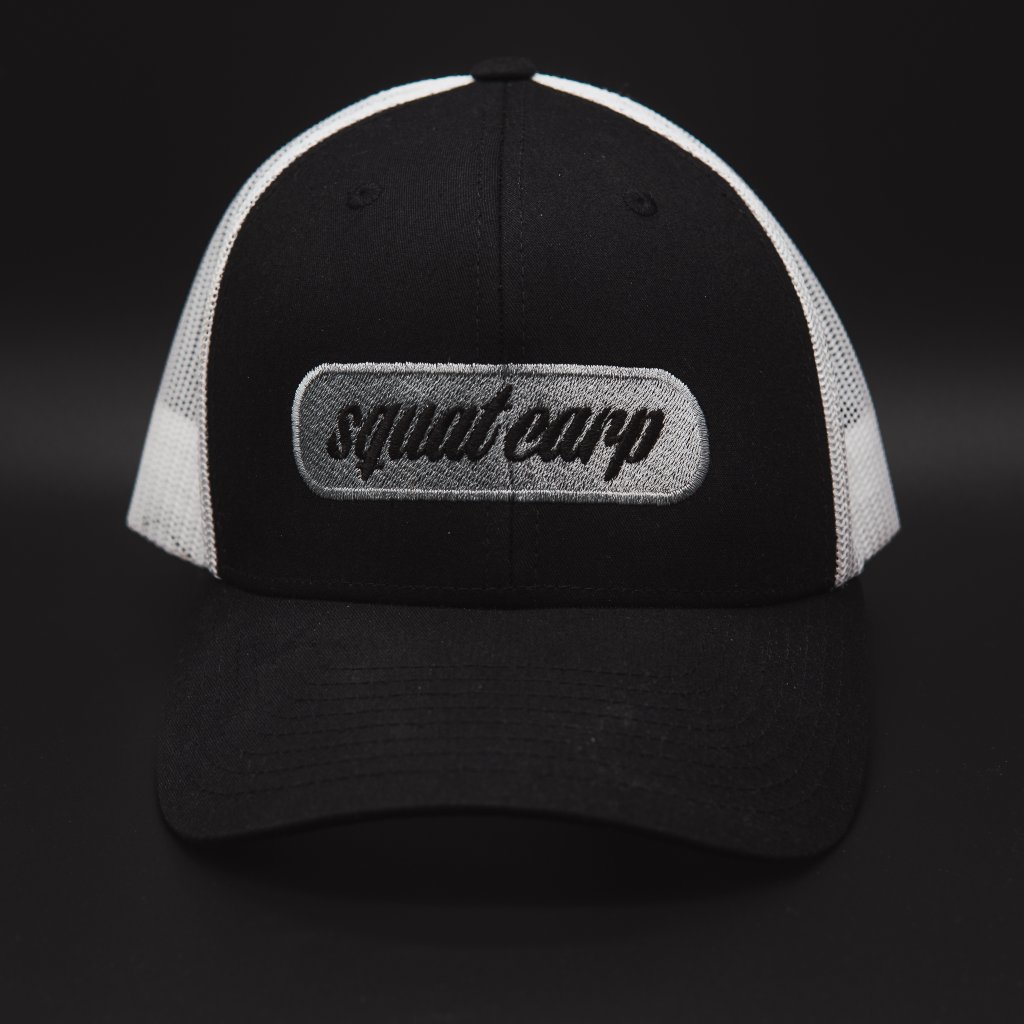 Nejoblíbenější vzor naší klasické kšiltovky. Černo-bílá kšiltovka se síťovanou zadní částí s logem Squat Carp.