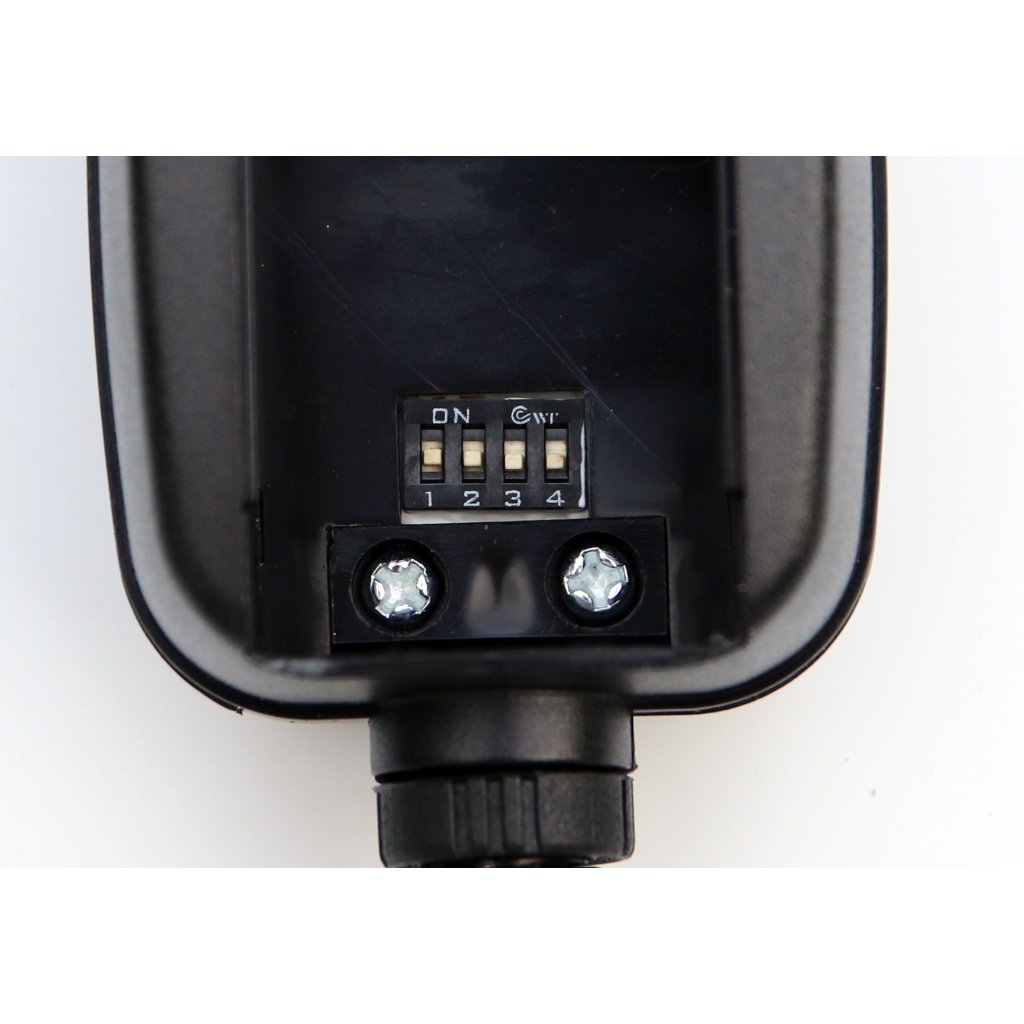 Sada hlásičů M1300 je při prodeji nastavena na základní frekvenci bezdrátové komunikace. (Všechny přepínače - piny, které se nacházejí pod bateriemi, jsou orientovány směrem dolů - viz. fotografie). Pro eliminaci možného rušení s jinými sadami hlásičů M1300 doporučujeme změnit nastavení frekvence. Změna se provádí přepnutím jednoho nebo více přepínačů do druhé polohy. Je možné nastavit až 16 různých kombinací. Na všech hlásičích a příposlechu v sadě je samozřejmě nutné nastavit stejnou kombinaci přepínačů.