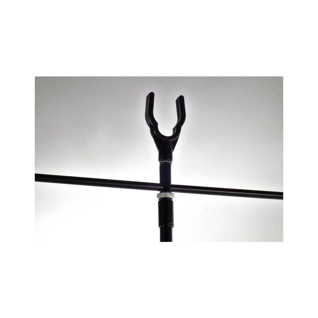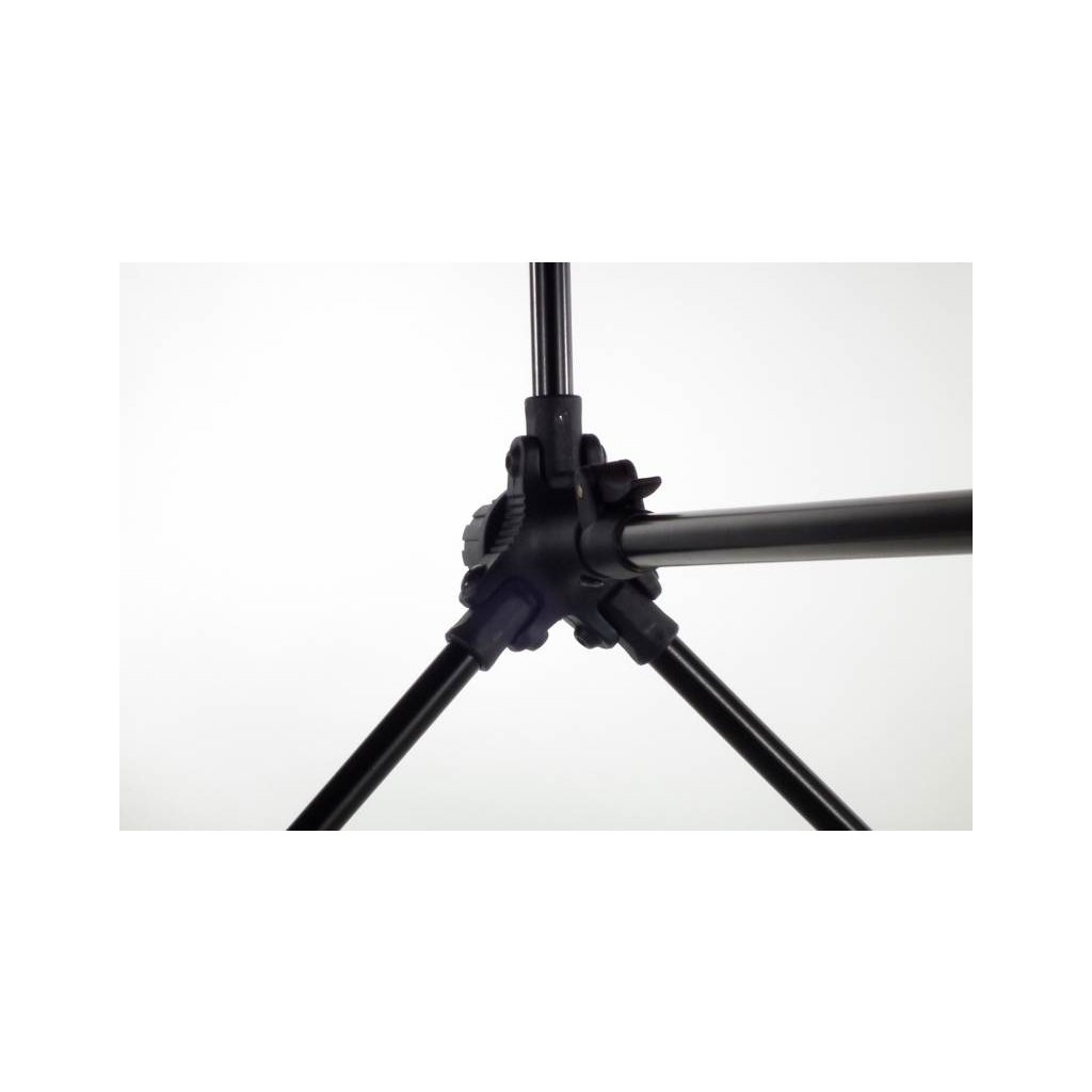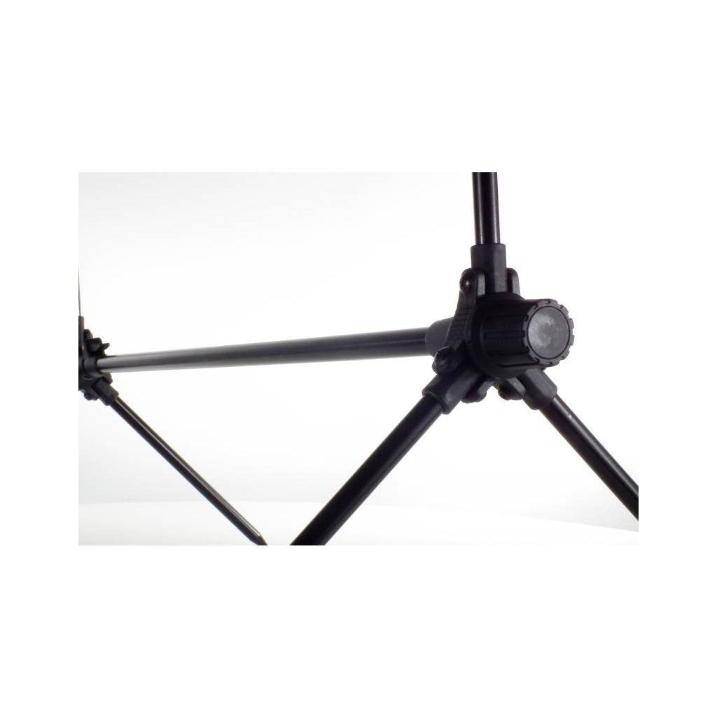 Součástí stojanu jsou plastové koncovky na pruty - tři přední a tři zadní. Stojan je vyroben z odlehčené oceli se dvěma nastavitelnými nožičkami. Snadno pomocí klipu ho umíme přizpůsobit ik velikosti prutem, od 70 do 125cm. Hmotnost pouze 0,75kg