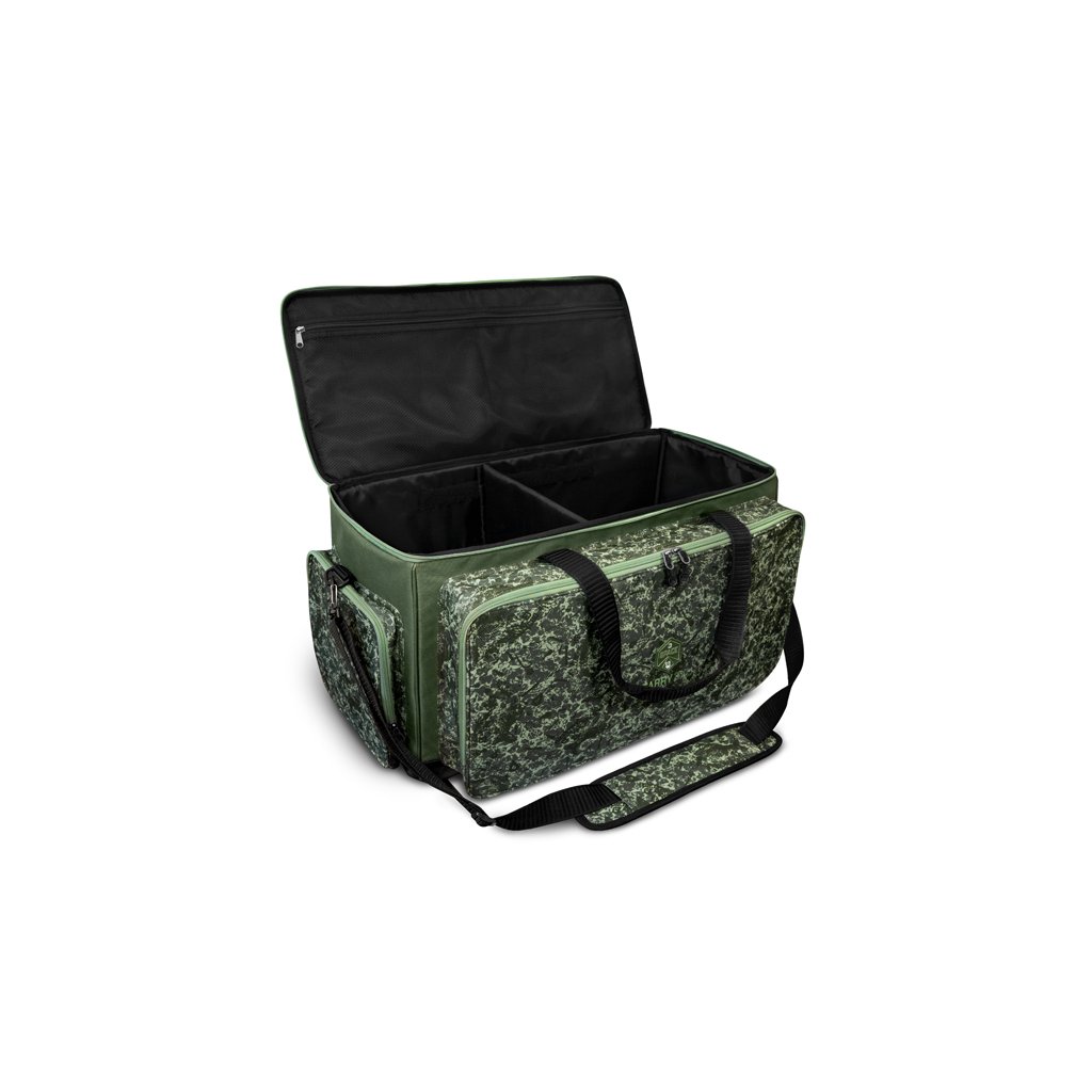 Delphin CarryALL 3XL v provedení C2G je eXXXtra velká praktická taška pro uložení a transport rybářského příslušenství či oblečení. Navržena byla s důrazem na praktičnost, trvanlivost a odolnost vůči nepříznivým povětrnostním vlivům. Ze všech stran je důkladně polstrována 6mm silnou vrstvou, pro maximální ochranu výbavy uvnitř. Díky polstrování stěn je mimořádně stabilní i v případě, že je naprosto prázdná. Celá spodní část a boky do výšky až 5 cm jsou opatřeny kvalitním nepromokavým materiálem. Nehrozí tak znečištění a následně znehodnocení produktu při položení například na mokrou nebo špinavou zem. Taška navíc disponuje 3 vnějšími zipovatelnými kapsami pro uložení dalšího příslušenství. Uvnitř najdete ještě jednu velkou síťovou kapsu. Samotný vnitřek je navržen tak, abyste do něj s lehkostí ukládali další tašky série SPACE či AREA. K variabilitě přispívá také nastavitelná přepážka na suchý zip, umožňující přizpůsobit prostor tašky podle potřeby a oddělit tak například rybářské potřeby od oblečení či jídla.